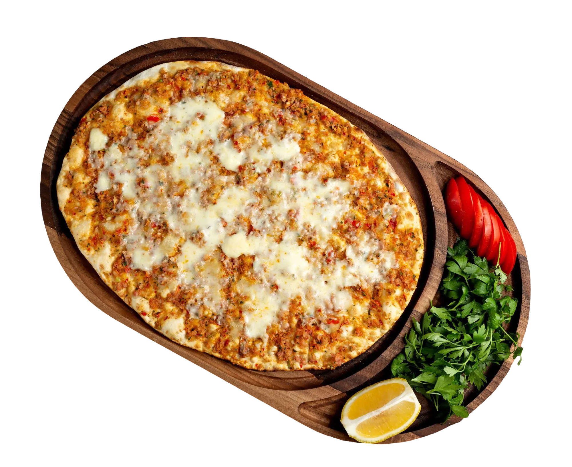 Lahmacun mit Drehspießfleisch und Käse [G,M,SO,7,9,13,14]