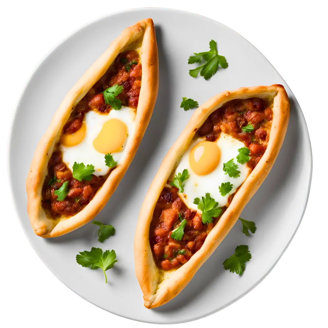 Herzhafte Pide, gekrönt mit einem perfekt gebratenen Ei.